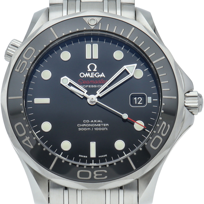 オメガを代表する人気ダイバーズウォッチ「シーマスター」。逆回転防止ベゼル・デイト表示機能等が搭載された本格派ダイバーズウォッチです。ベゼルが傷のつきにくいセラミック仕様に変更されました。