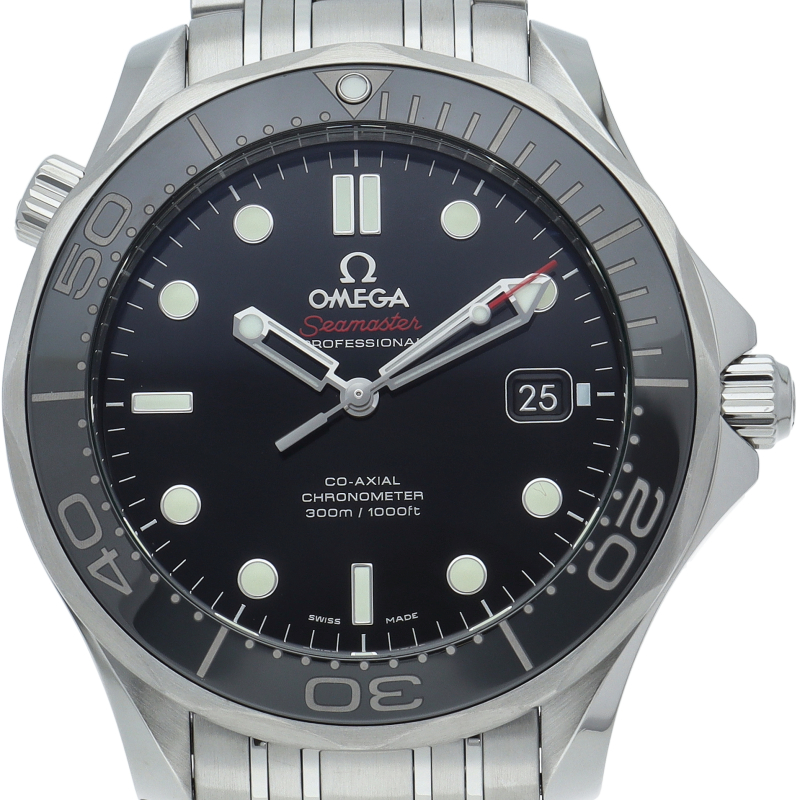 オメガを代表する人気ダイバーズウォッチ「シーマスター」。逆回転防止ベゼル・デイト表示機能等が搭載された本格派ダイバーズウォッチです。ベゼルが傷のつきにくいセラミック仕様に変更されました。