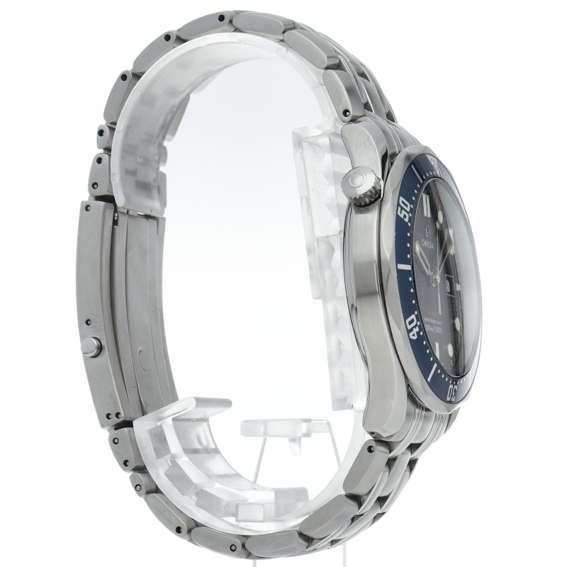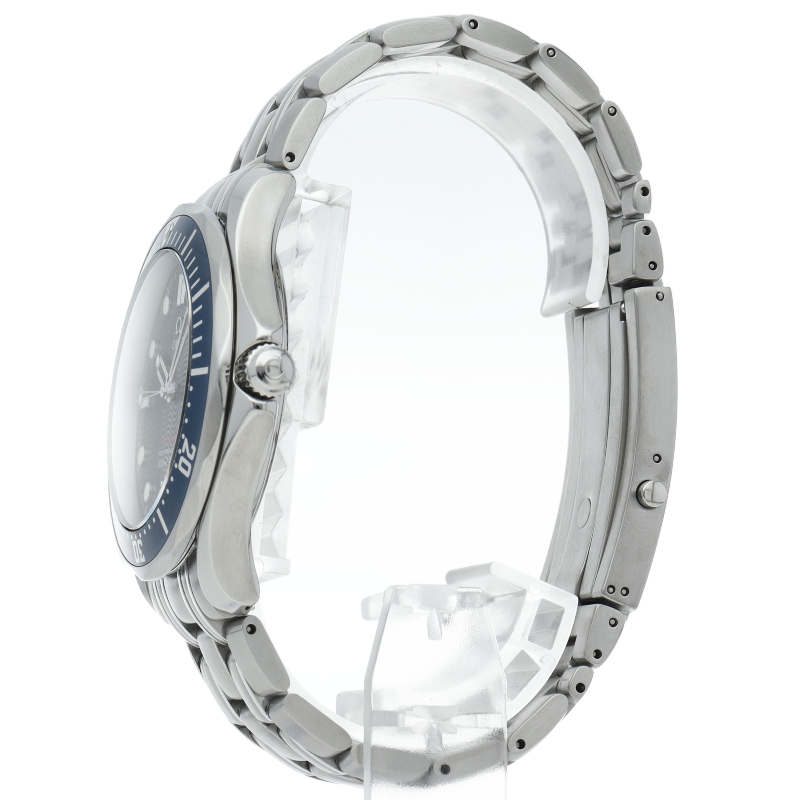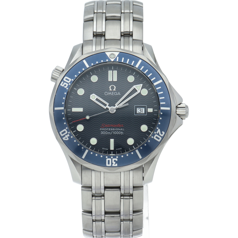 オメガを代表する人気ダイバーズウォッチ「シーマスター」。逆回転防止ベゼル・デイト表示機能等が搭載された本格派ダイバーズウォッチです。仕様変更により文字盤のシーマスターの文字が赤字に変更されております。