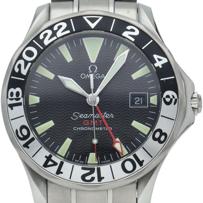 オメガを代表する人気ダイバーズウォッチ「シーマスター」。ヘリウムエスケープバルブ・GMT機能を備えた本格的な多機能ダイバーズモデル。