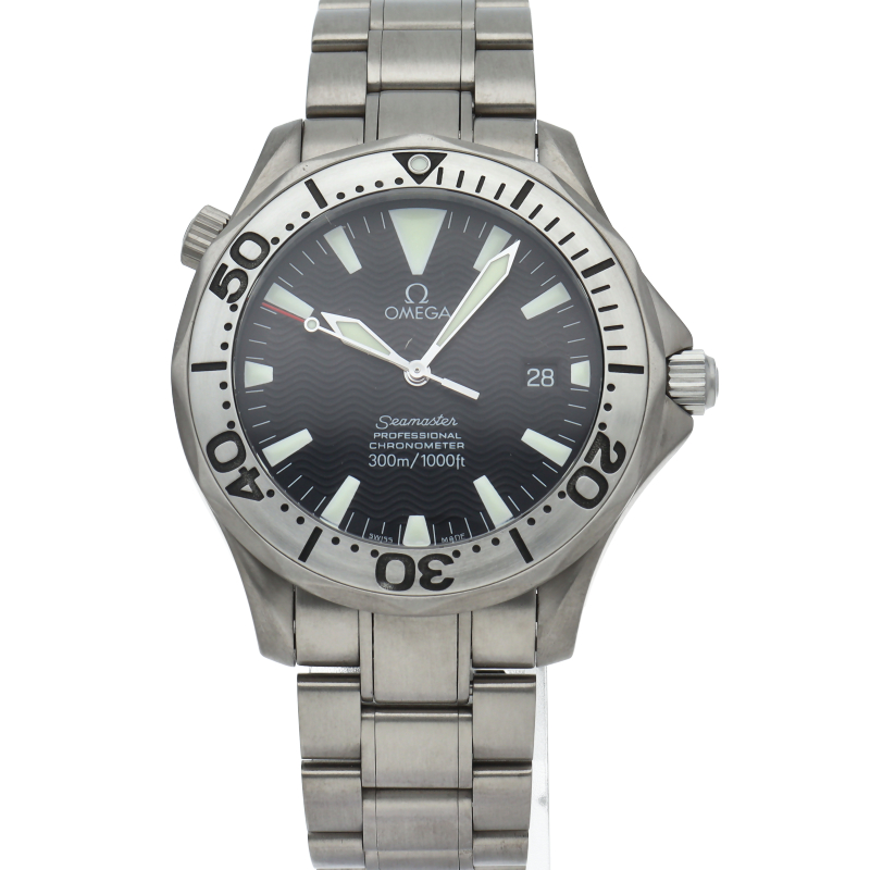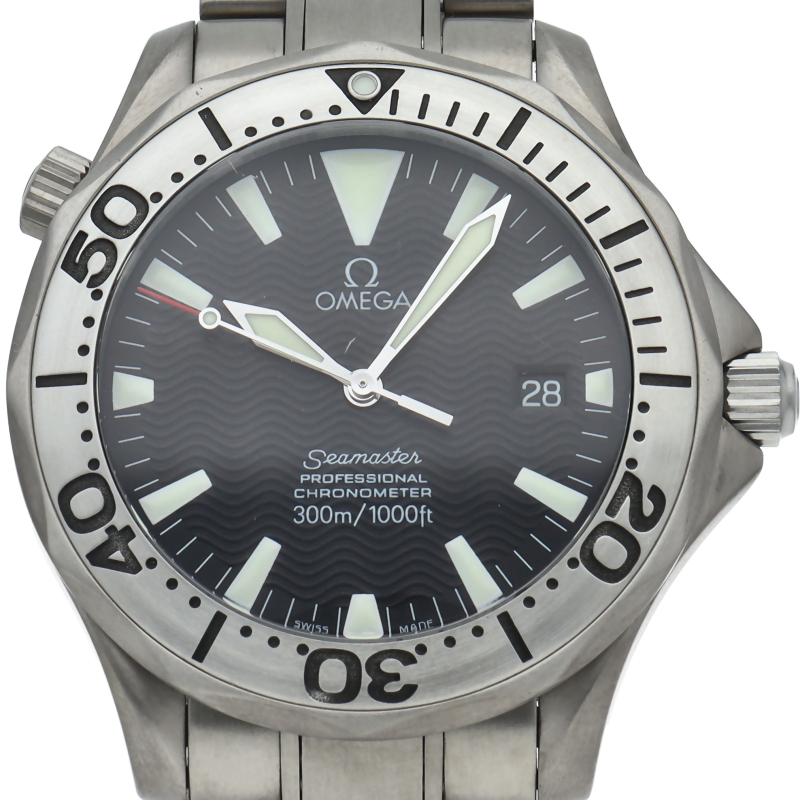 オメガを代表する人気ダイバーズウォッチ「シーマスター」。逆回転防止ベゼル・デイト表示機能等が搭載された本格派ダイバーズウォッチです。チタン素材を採用しておりますので、軽く強くダイバーウォッチにはおすすめの一本です。