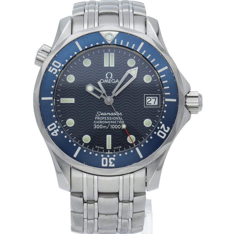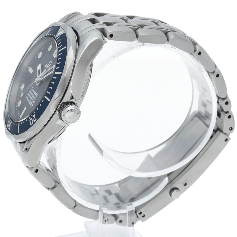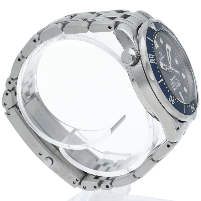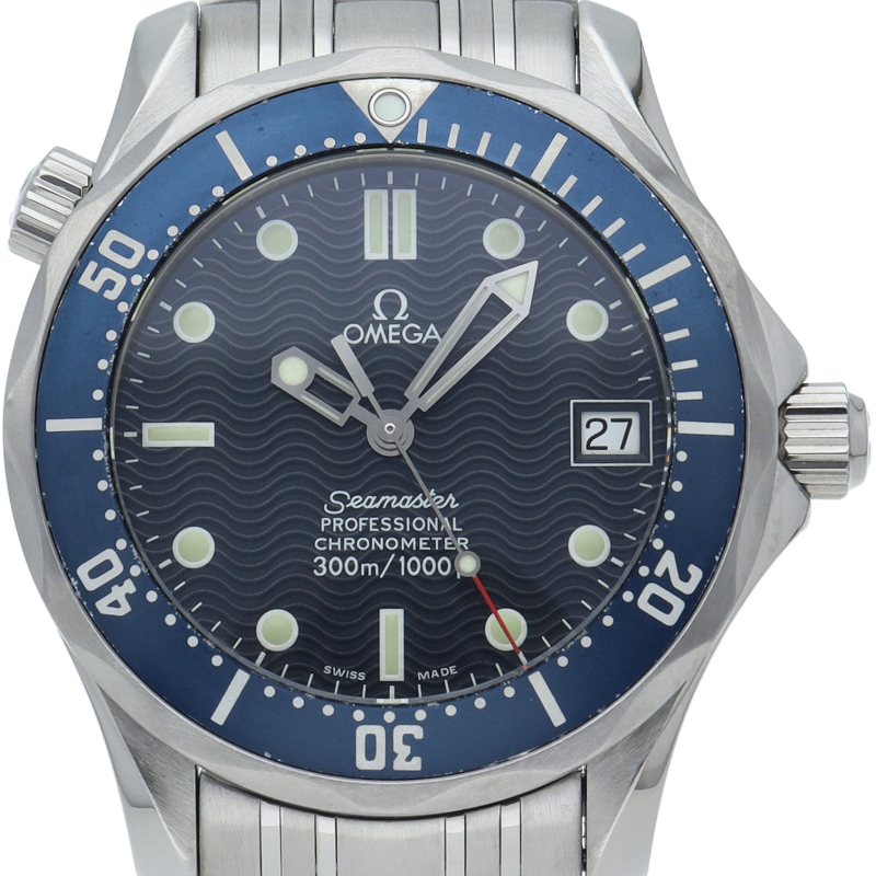 オメガを代表する人気ダイバーズウォッチ「シーマスター」。300mの防水性能を備え、文字盤には青い波の模様が入った実用性の高いベーシックなモデルです。