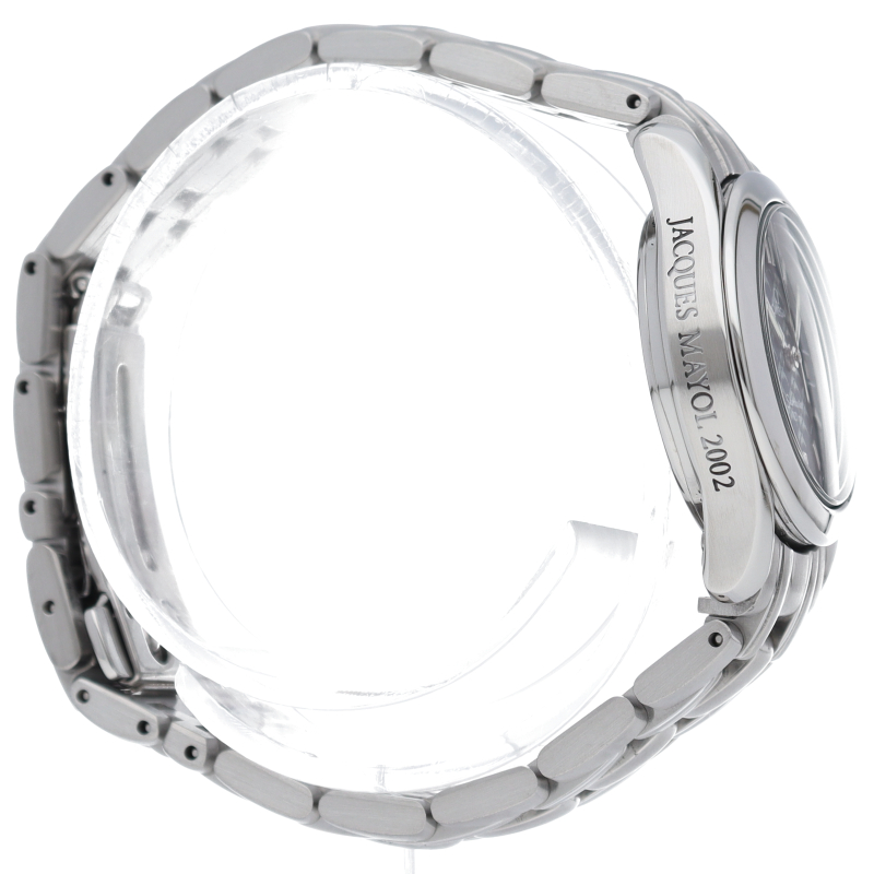 シーマスターを愛用していたフランスのフリーダイバー ジャック・マイヨールの記録と貢献を称えて作られたモデルです。文字盤には波をイメージしたデザインがされています。1500本限定のモデルなので希少性のある腕時計です。