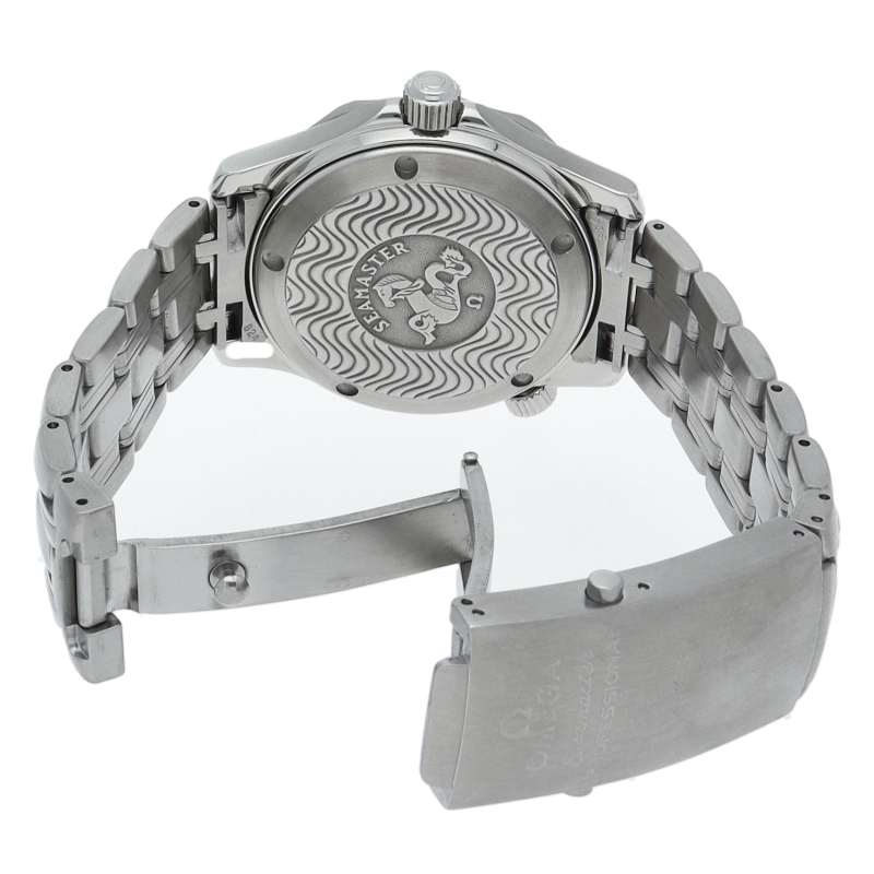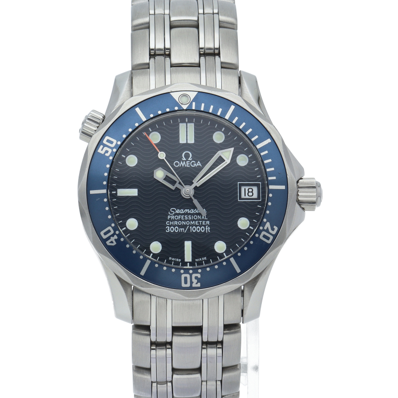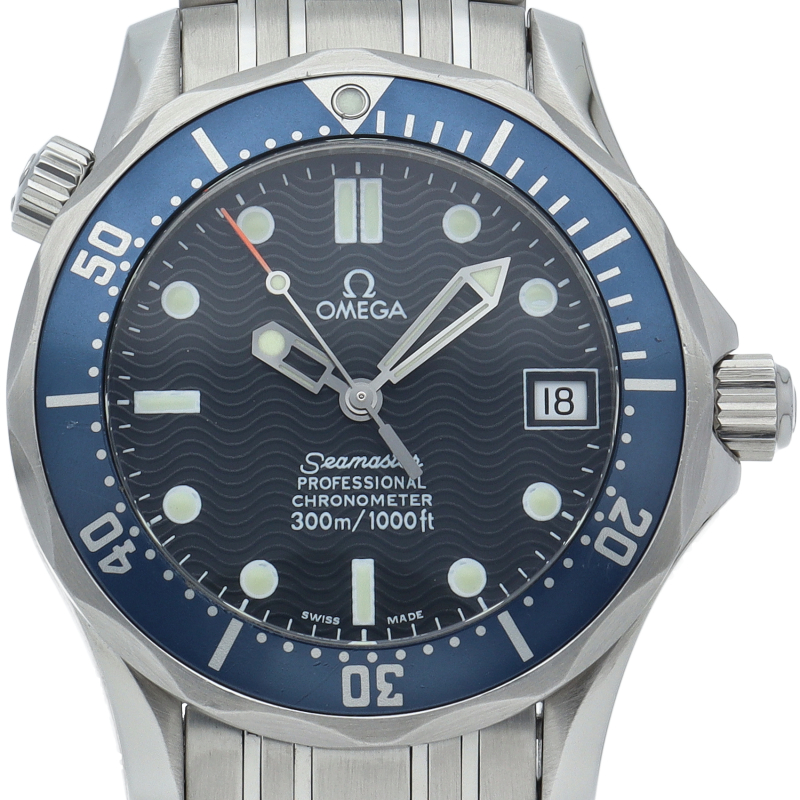 オメガを代表する人気ダイバーズウォッチ「シーマスター」。300mの防水性能を備え、文字盤には青い波の模様が入った実用性の高いベーシックなモデルです。