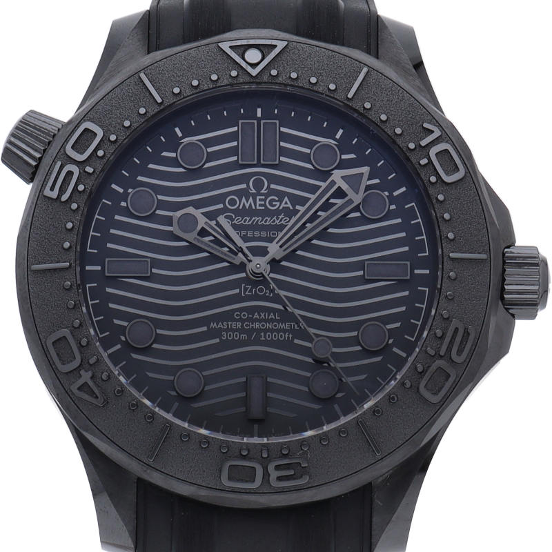 シーマスター プロフェッショナル ダイバー300Mは、1993年の発売以来、伝説的な支持を誇ってきました。ケース、ベゼル、ウェーブパターンのダイアル、リューズ、ヘリウムエスケープバルブのすべてにブラックセラミック [ZrO2] を使用。個性的で立体感のあるルックに仕上がっています。キャリバー8806搭載。