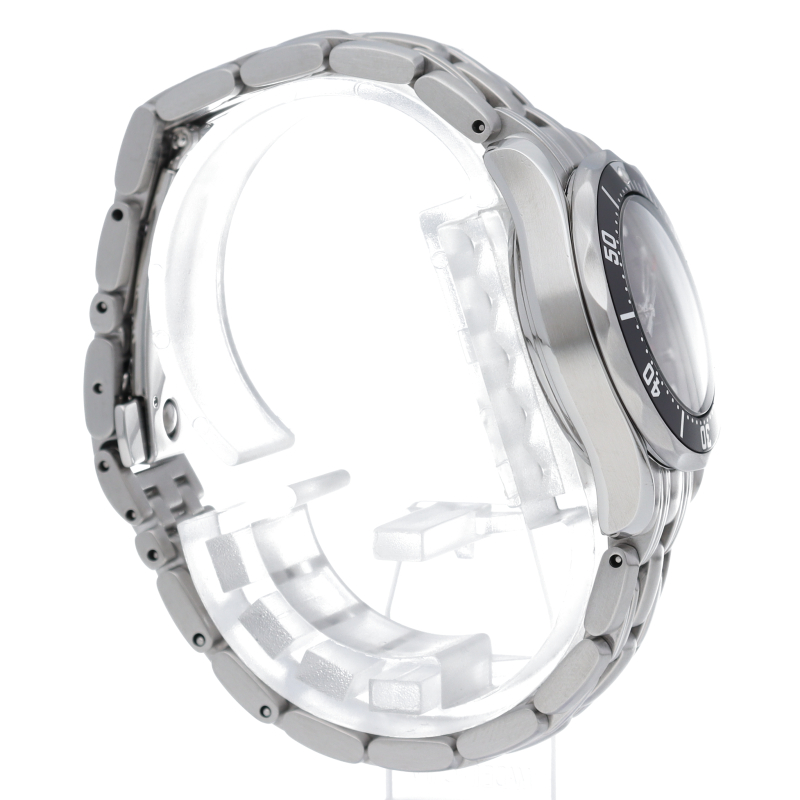 オメガを代表する人気ダイバーズウォッチ「シーマスター」。300mの防水性能を誇る本格ダイバーウォッチです。ブラック文字盤には波を模したギョーシェ模様が入れられ、このモデルの出自をイメージさせます。