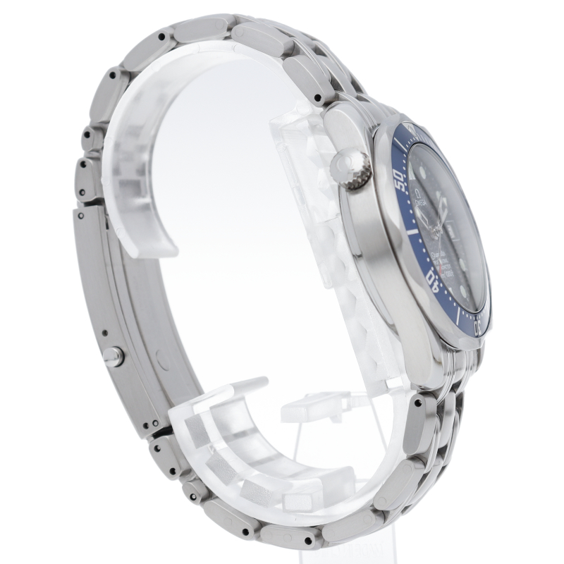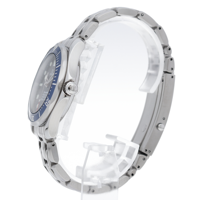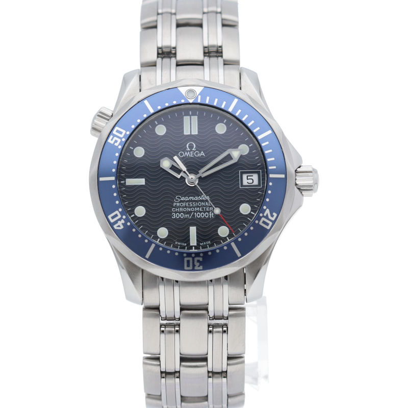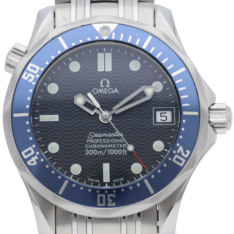 オメガを代表する人気ダイバーズウォッチ「シーマスター」。300mの防水性能を備え、文字盤には青い波の模様が入った実用性の高いベーシックなモデルです。