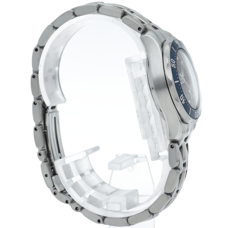 オメガを代表する人気ダイバーズウォッチ「シーマスター」。300mの防水性能を誇る本格ダイバーウォッチです。ブラック文字盤には波を模したギョーシェ模様が入れられ、このモデルの出自をイメージさせます。