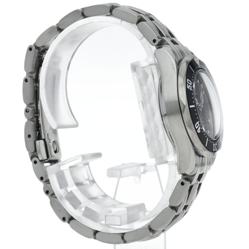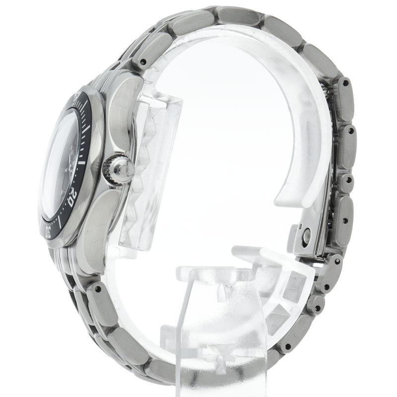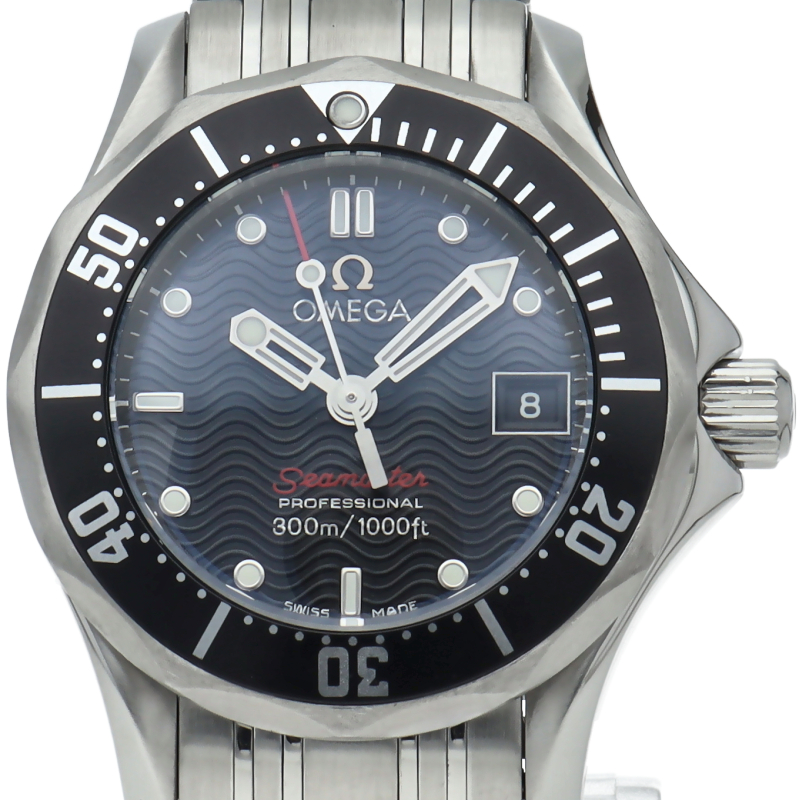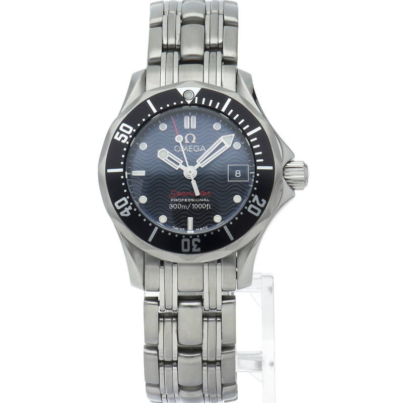 オメガを代表する人気ダイバーズウォッチ「シーマスター」。300mの防水性能を誇る本格ダイバーウォッチです。ブラック文字盤には波を模したギョーシェ模様が入れられ、このモデルの出自をイメージさせます。