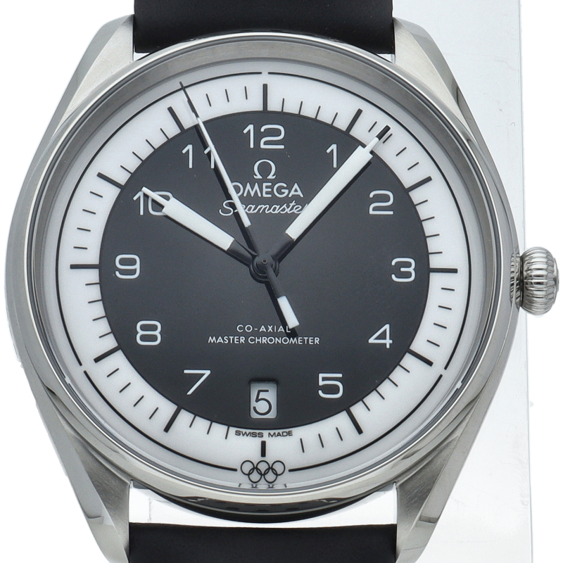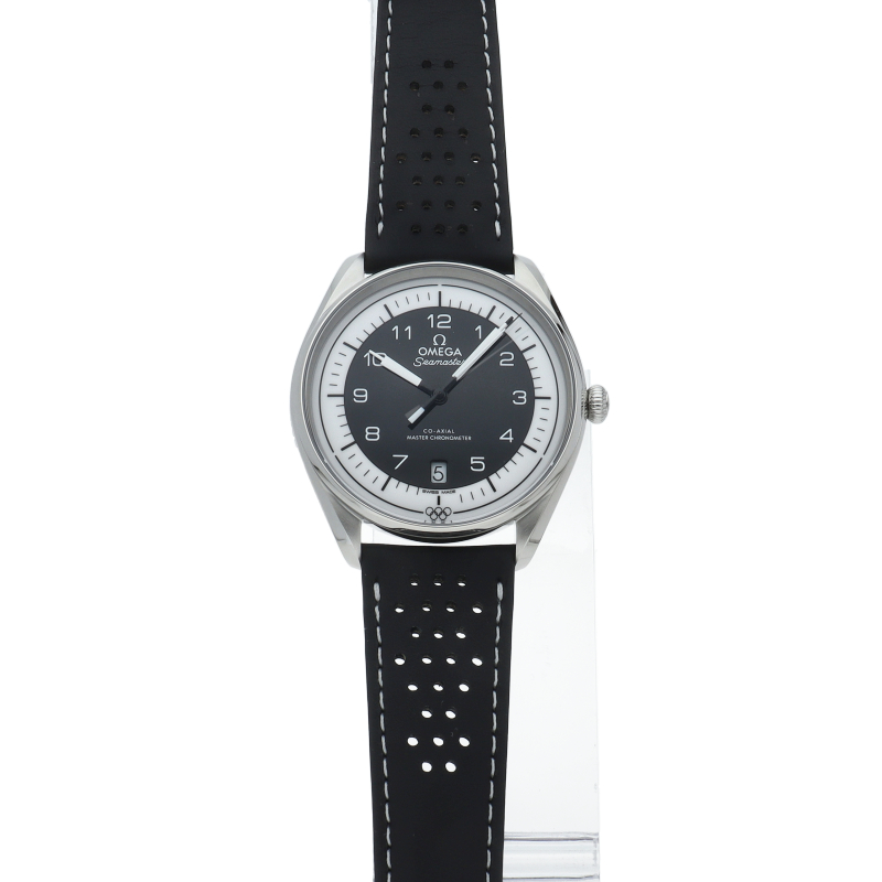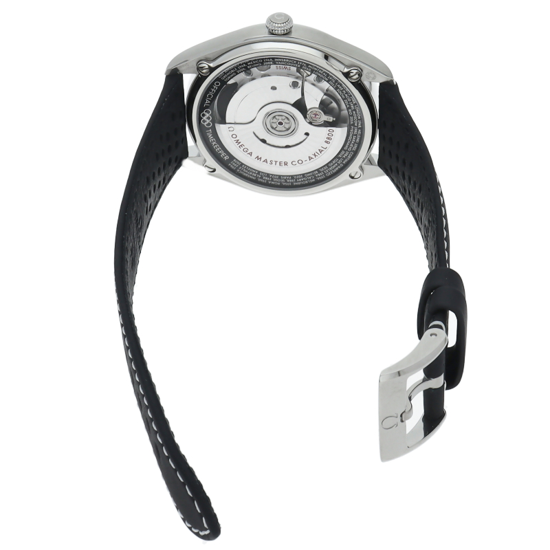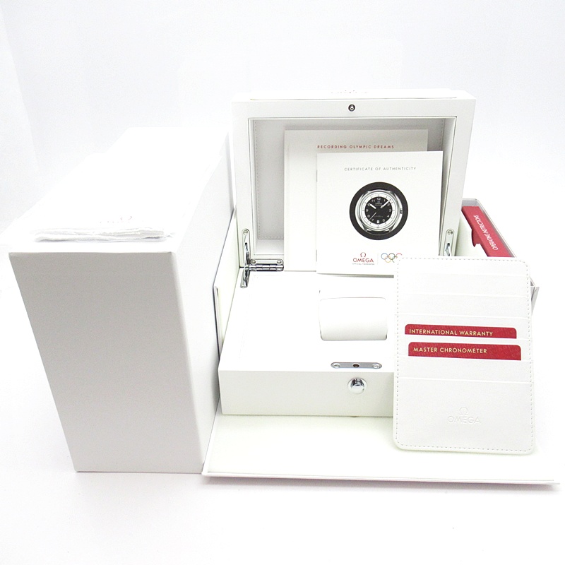 オメガが1932年から行っているオリンピックのオフィシャルタイムキーパーの2032年に100周年を迎えることを記念した特別なモデル五輪マークをモチーフとした5色からなるモデルでこちらはブラック1976年のモントリオール大会とインスブルック大会で使用されたストップウォッチがモチーフとなっています。ダイアル外周の円は、20秒間隔で3つに区切られており心拍数を簡単に計算することが可能です。