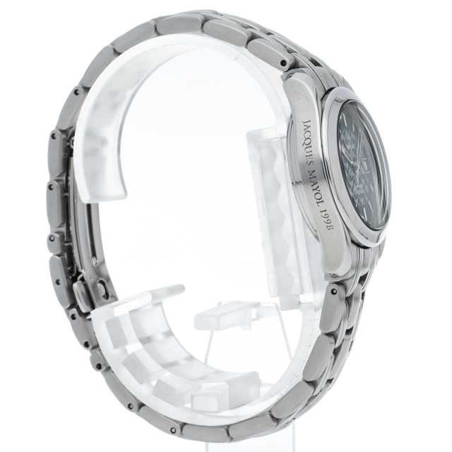 1976年に素潜りで100mを超える記録を作り、映画の「グランブルー」のモデルにもなったジャックマイヨール氏とのコラボレーションモデルです。こちらは1998年に世界限定で2000本発売になった人気モデルです。
