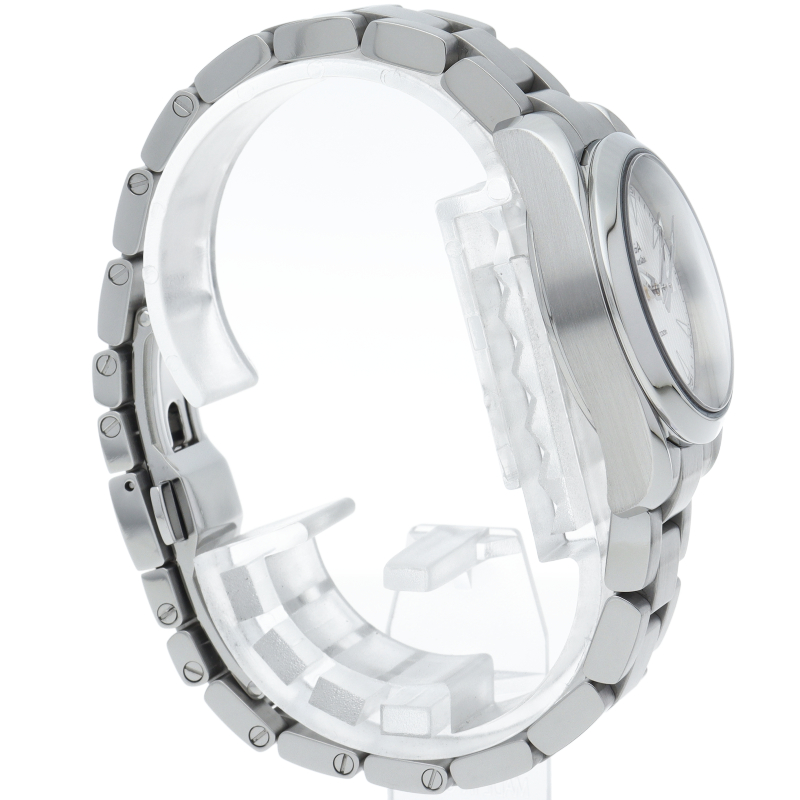 上品でどんなシーンでも使えるシンプルなデザインが特徴の「アクアテラ」。視認性に優れたアロー針が使用されファッショナブルでスポーティーな1本。仕様が変更されたストライプ模様の文字盤です。