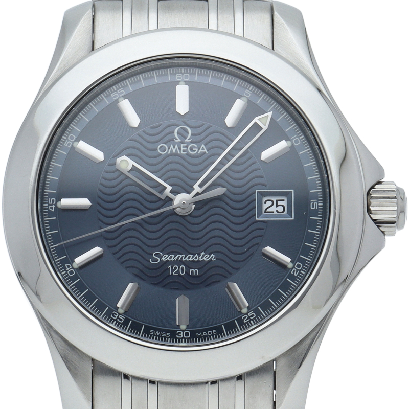 オメガを代表する人気ダイバーズウォッチ「シーマスター」。120M防水にデイト表示機能が搭載されたシンプルかつ実用性のある1本です。
