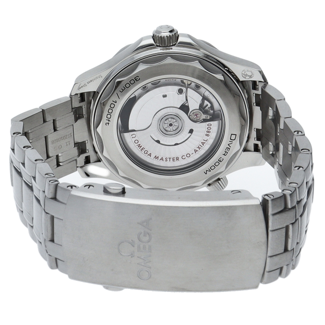 オメガの定番ダイバーズウォッチです。2018年に発表された最新型です。オメガ最新式の機械であるキャリバー8800を搭載しマスターコーアクシャル化されました。シースルーバックとなり、中の機械を見て楽しむ事ができます。