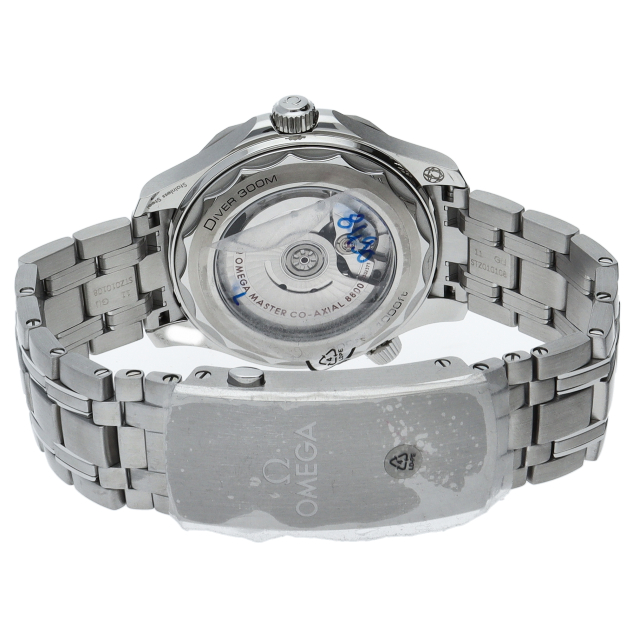 オメガの定番ダイバーズウォッチです。2018年に発表された最新型です。オメガ最新式の機械であるキャリバー8800を搭載しマスターコーアクシャル化されました。シースルーバックとなり、中の機械を見て楽しむ事ができます。
