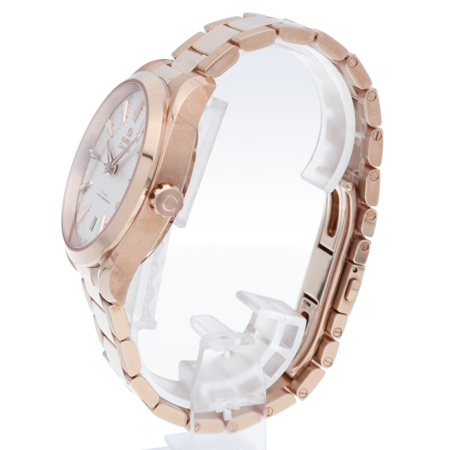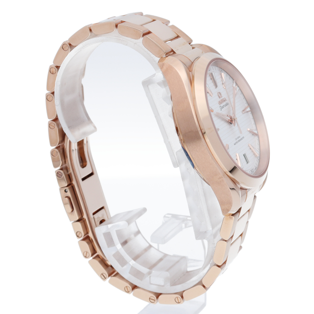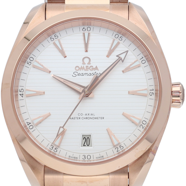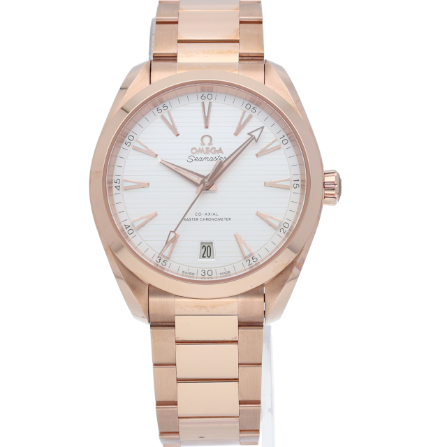 海に携わってきたオメガの長い歴史を代表する「シーマスター アクアテラ」コレクション。シルバーのダイアルは、豪華ヨットのウッドデッキをイメージさせる印象的なデザイン「チークコンセプト」と呼ばれる横ストライプのモチーフが採用されています。「スイス連邦計量・認定局(METAS)認定の最高水準を誇るオメガ コーアクシャル マスター クロノメーター キャリバー8901を搭載。