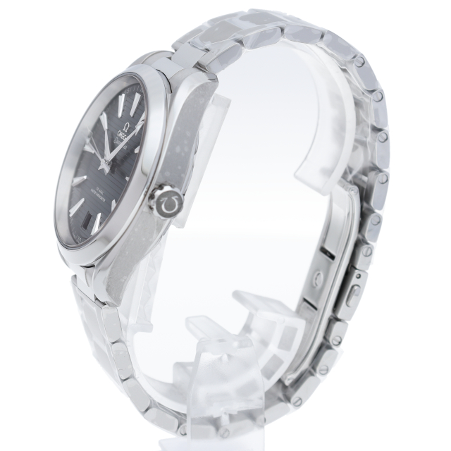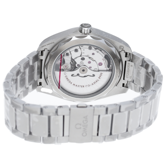 「シーマスター アクアテラ」。文字盤にあしらわれた豪華ヨットのウッドデッキをイメージしたチークコンセプトはそのままに、ムーブメントには新たにMETAS認定マスタークロノメーターのコーアクシャルキャリバー8900を搭載します。精度は勿論ですが、パワーリザーブは60時間確保され、耐磁性能は15,000ガウス、防水性能も150mあり安心してお使い頂けます。