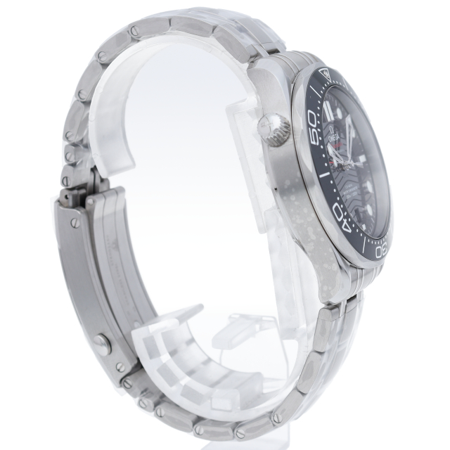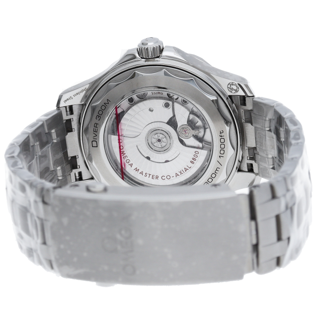 オメガの定番ダイバーズウォッチです。2018年に発表された最新型です。オメガ最新式の機械であるキャリバー8800を搭載しマスタークロノメーター化されました。シースルーバックとなり、中の機械を見て楽しむ事ができます。