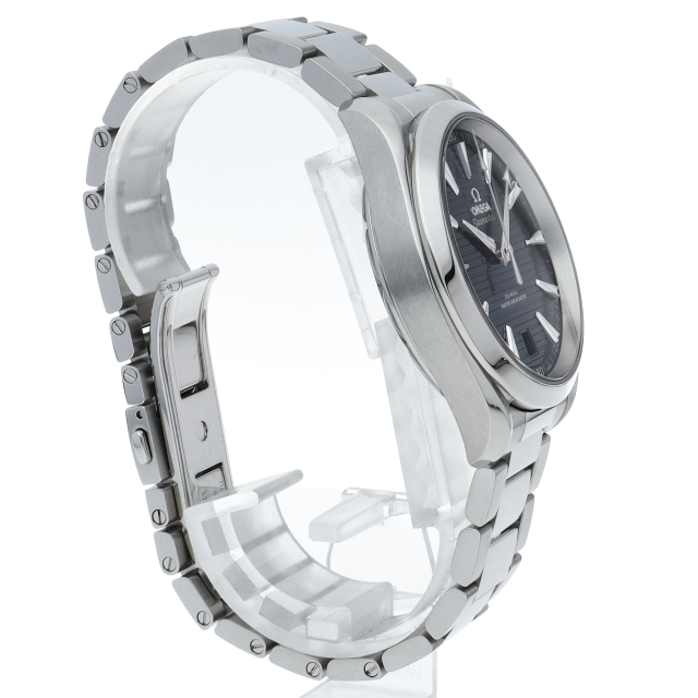 海に携わってきたオメガの長い歴史を代表する「シーマスター アクアテラ」 コレクション。シンメトリックな41mmのケースはステンレススティール製で、ケースバックにはウェーブ模様で縁取られたデザインが施されています。