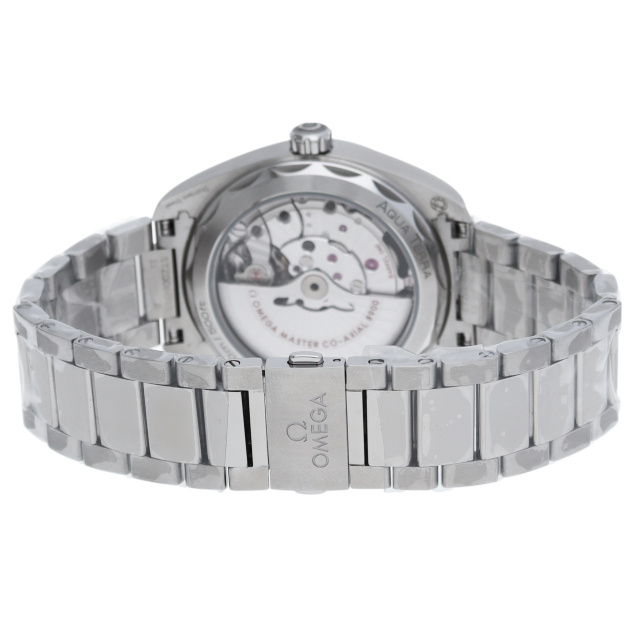 海に携わってきたオメガの長い歴史を代表する「シーマスター アクアテラ」 コレクション。シンメトリックな41mmのケースはステンレススティール製で、ケースバックにはウェーブ模様で縁取られたデザインが施されています。