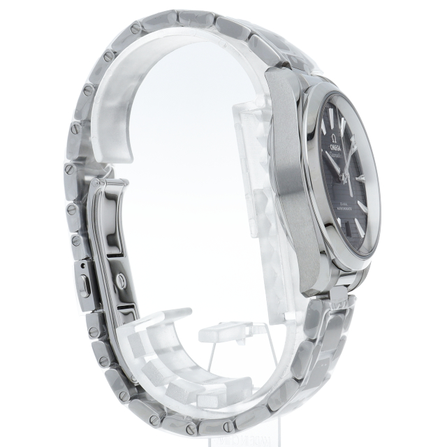 海に携わってきたオメガの長い歴史を代表する「シーマスター アクアテラ」 コレクション。シンメトリックな38mmのケースはステンレススティール製で、ケースバックにはウェーブ模様で縁取られたデザインが施されています。2017年新作。