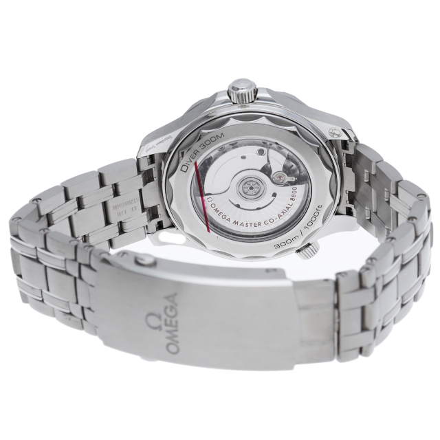 オメガの定番ダイバーズウォッチです。2018年に発表された最新型です。オメガ最新式の機械であるキャリバー8800を搭載しマスタークロノメーター化されました。シースルーバックとなり、中の機械を見て楽しむ事ができます。