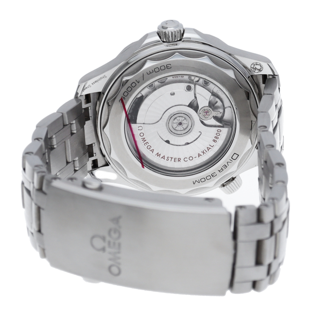 オメガの定番ダイバーズウォッチです。2018年に発表された最新型です。オメガ最新式の機械であるキャリバー8800を搭載しマスタークロノメーター化されました。シースルーバックとなり、中の機械を見て楽しむ事ができます。