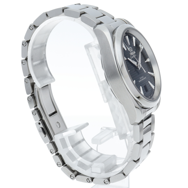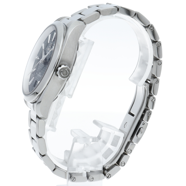 海に携わってきたオメガの長い歴史を代表する「シーマスター アクアテラ」 コレクション。シンメトリックな38mmのケースはステンレススティール製で、ケースバックにはウェーブ模様で縁取られたデザインが施されています。2017年新作。