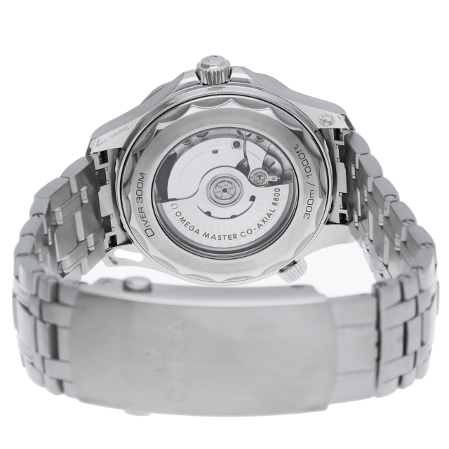 オメガの定番ダイバーズウォッチです。2018年に発表された最新型です。オメガ最新式の機械であるキャリバー8800を搭載しマスタークロノメーター化されました。シースルーバックとなり、中の機械を見て楽しむ事ができます。