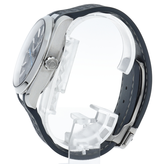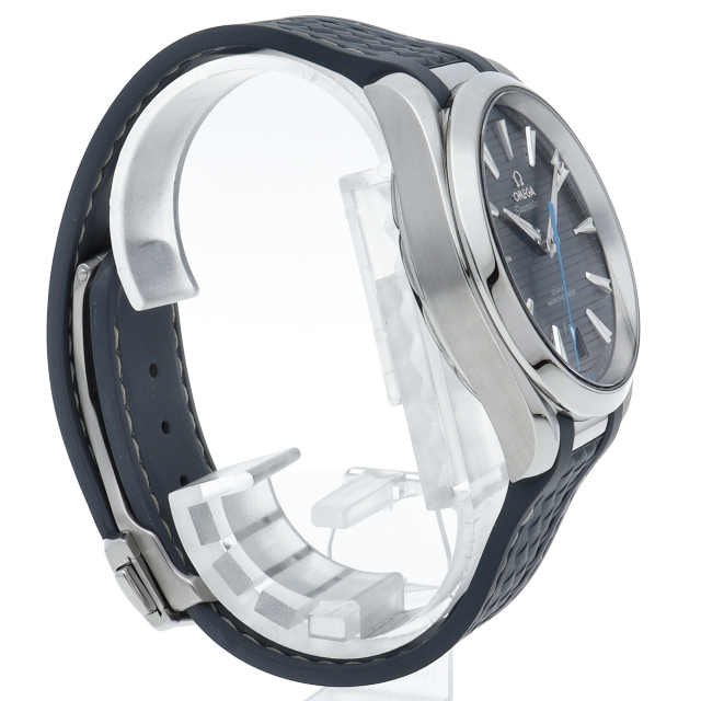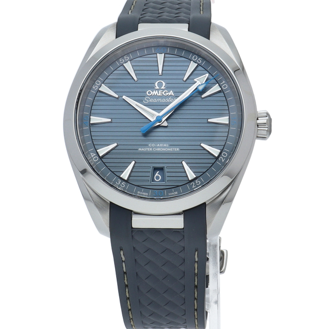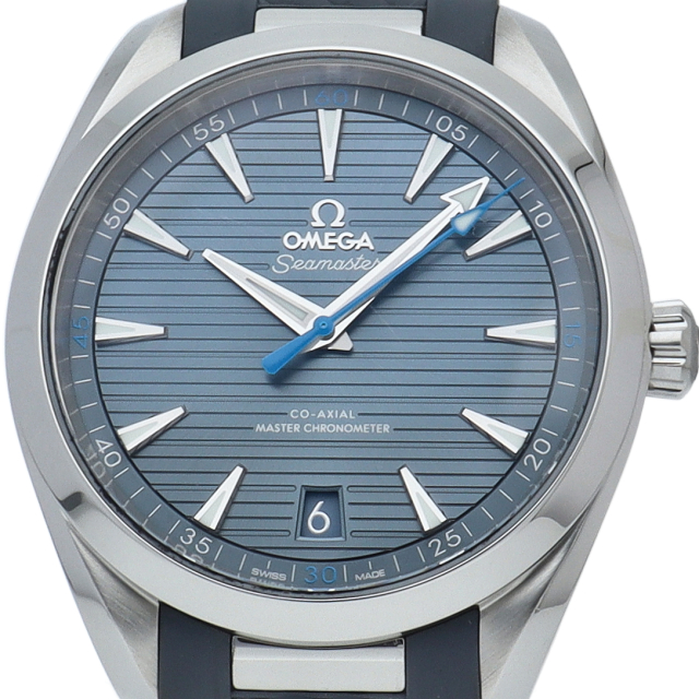 海に携わってきたオメガの長い歴史を代表する「シーマスター アクアテラ」 コレクション。ブルーのダイアルは、豪華ヨットのウッドデッキをイメージさせる印象的なデザイン「チークコンセプト」と呼ばれる横ストライプのモチーフが採用されています。ロジウムプレート加工が施された針とインデックスにはホワイトのスーパールミノヴァが塗布され、6時位置には日付表示が備えられています。キャリバー8900搭載。