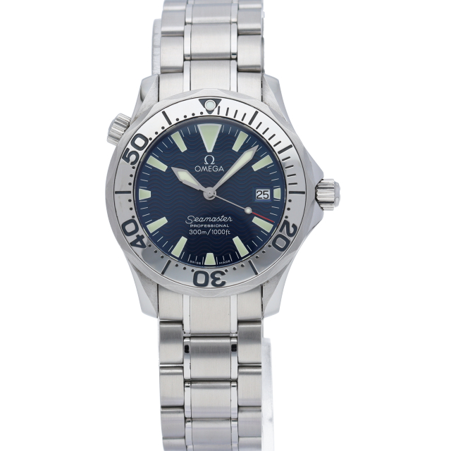 オメガを代表する人気ダイバーズウォッチ「シーマスター」。ヘリウムエスケープバルブを備えた本格的な多機能ダイバーズモデル。海を思わせるブルーのダイヤルが素敵です。