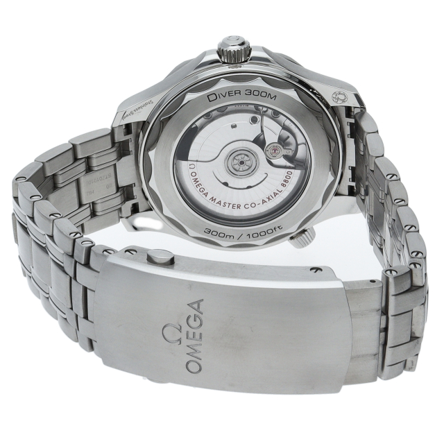 オメガの定番ダイバーズウォッチです。2018年に発表された最新型です。オメガ最新式の機械であるキャリバー8800を搭載しマスターコーアクシャル化されました。シースルーバックとなり、中の機械を見て楽しむ事ができます。
