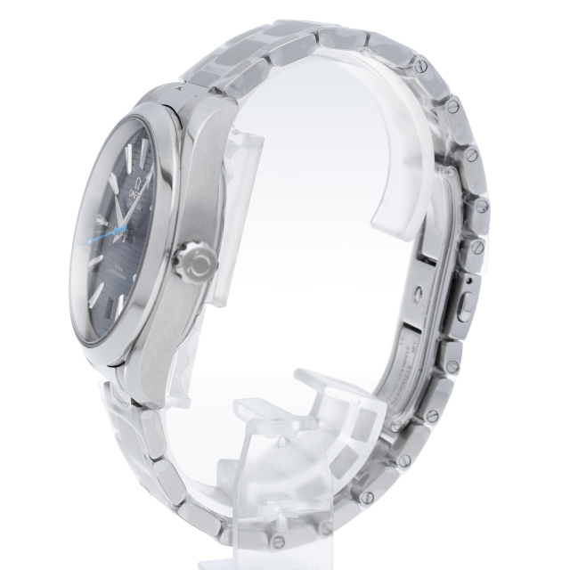 海に携わってきたオメガの長い歴史を代表する「シーマスター アクアテラ」 コレクション。シンメトリックな41mmのケースはステンレススティール製で、ケースバックにはウェーブ模様で縁取られたデザインが施されています。