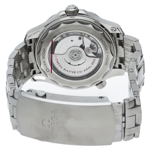 オメガの定番ダイバーズウォッチです。2018年に発表された最新型です。オメガ最新式の機械であるキャリバー8800を搭載しマスタークロノメーター化されました。シースルーバックとなり、中の機械を見て楽しむ事ができます。