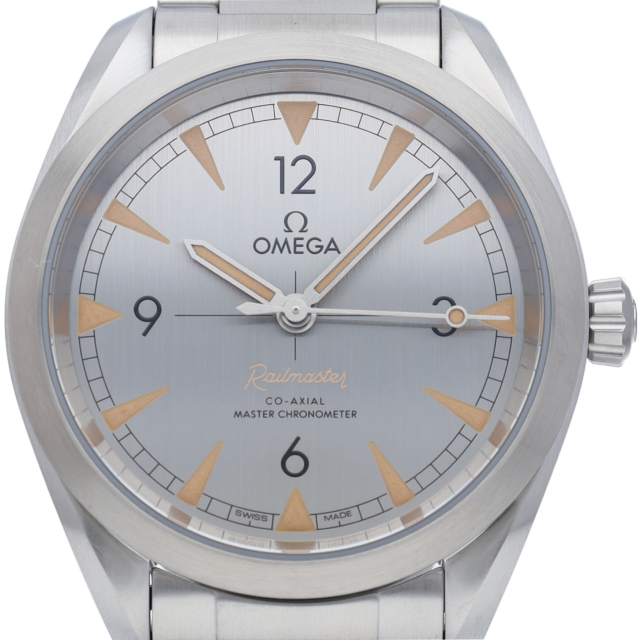 シーマスターアクアテラの派生モデルとして復活を果たしたレイルマスター。ネーミング通り鉄道時計モデルらしく視認性を最大限に強調したダイヤルが特徴的といえます。