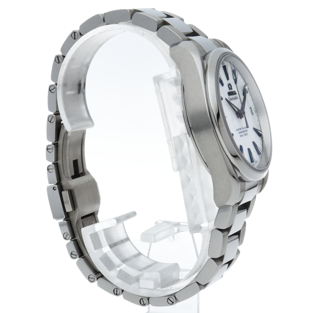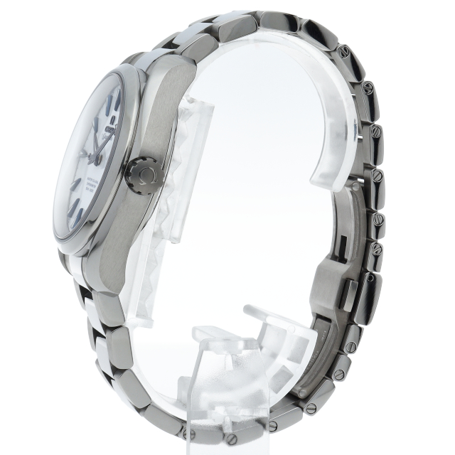 グッドプラネット財団とのパートナーシップを記念して誕生した「シーマスター アクアテラ」のオールチタンモデル。ラッカー仕上げホワイトのダイアルにブルーのアプライドインデックスが美しいデザインの1本。オメガ マスター コーアクシャル キャリバー8500搭載。