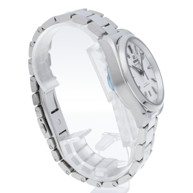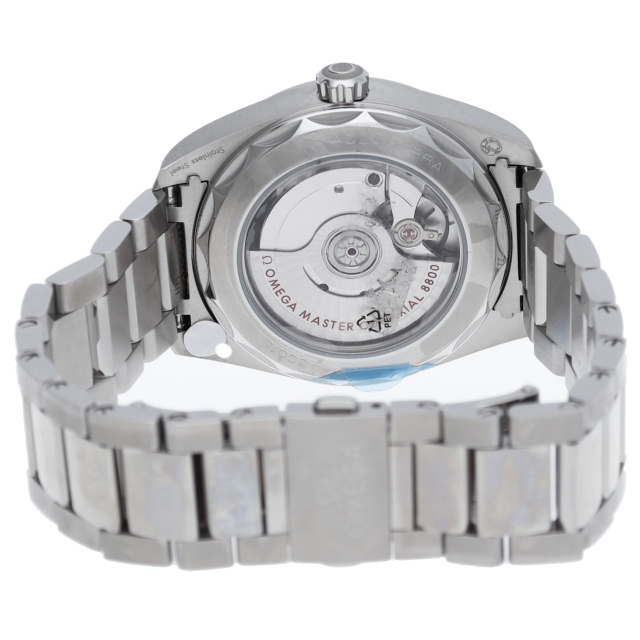 海に携わってきたオメガの長い歴史を代表する「シーマスター アクアテラ」 コレクション。シンメトリックな38mmのケースはステンレススティール製で、ケースバックにはウェーブ模様で縁取られたデザインが施されています。