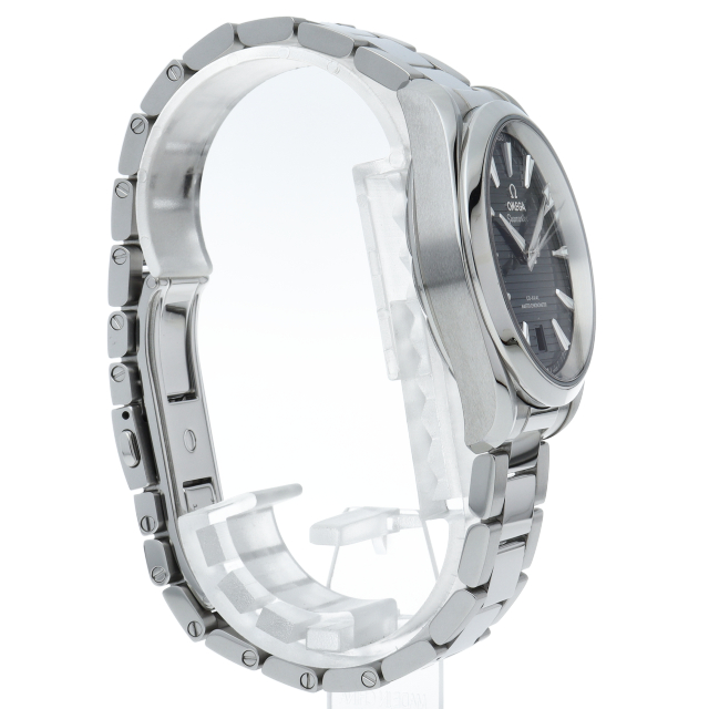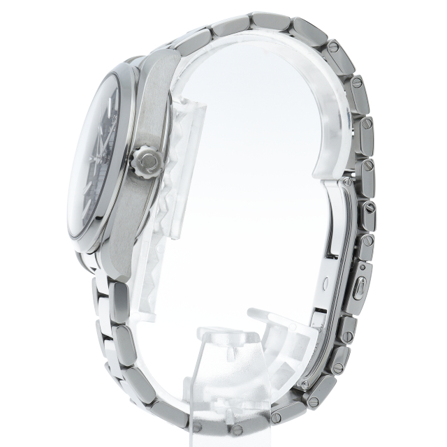 海に携わってきたオメガの長い歴史を代表する「シーマスター アクアテラ」 コレクション。シンメトリックな38mmのケースはステンレススティール製で、ケースバックにはウェーブ模様で縁取られたデザインが施されています。2017年新作。