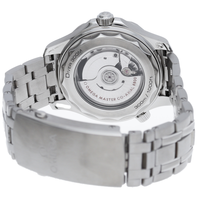 オメガの定番ダイバーズウォッチです。2018年に発表された最新型です。オメガ最新式の機械であるキャリバー8800を搭載しマスターコーアクシャル化されました。シースルーバックとなり、中の機械を見て楽しむ事ができます。