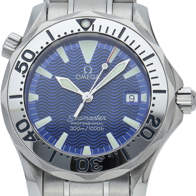 オメガを代表する人気ダイバーズウォッチ「シーマスター」。ヘリウムエスケープバルブを備えた本格的な多機能ダイバーズモデル。海を思わせるブルーのダイヤルが素敵です。