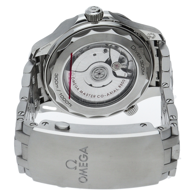 オメガの定番ダイバーズウォッチです。2018年に発表された最新型です。オメガ最新式の機械であるキャリバー8800を搭載しマスタークロノメーター化されました。シースルーバックとなり、中の機械を見て楽しむ事ができます。