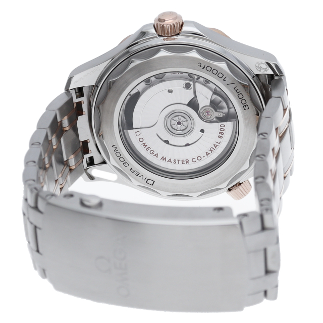 オメガの定番ダイバーズウォッチです。オメガ最新式の機械であるキャリバー8800を搭載しマスターコーアクシャル化されました。シースルーバックとなり、中の機械を見て楽しむ事ができます。