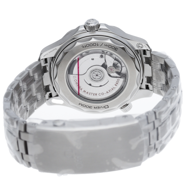 オメガの定番ダイバーズウォッチです。2018年に発表された最新型です。オメガ最新式の機械であるキャリバー8800を搭載しマスタークロノメーター化されました。シースルーバックとなり、中の機械を見て楽しむ事ができます。