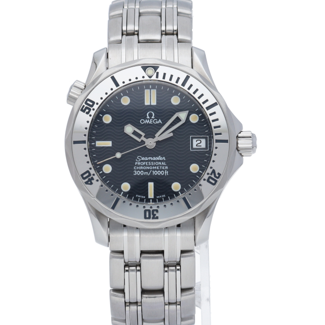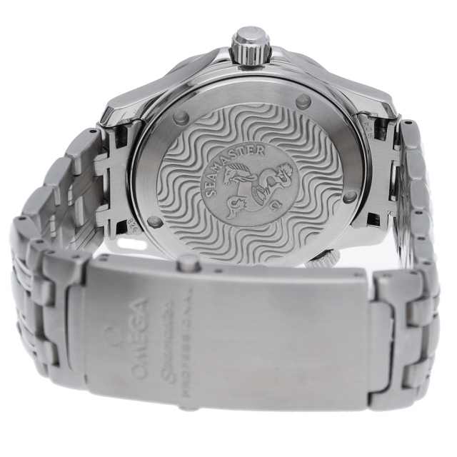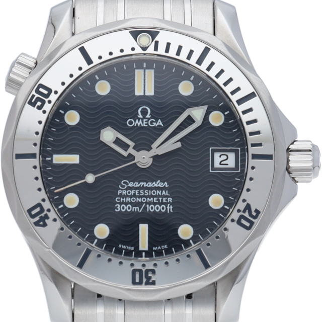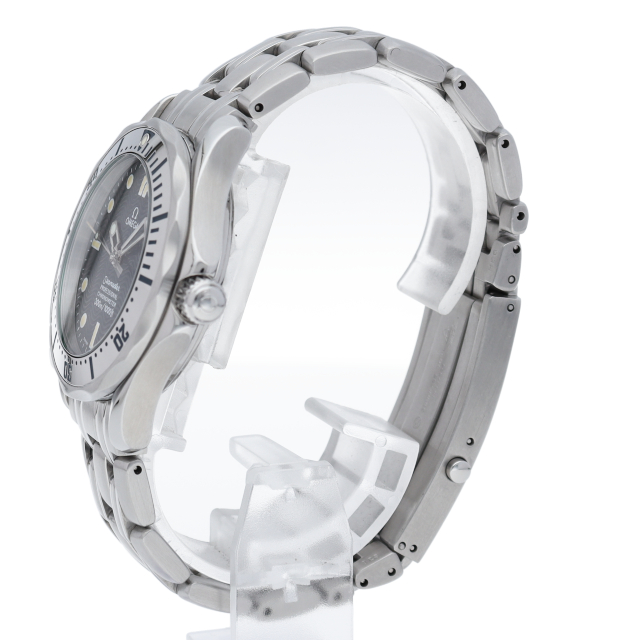 オメガを代表する人気ダイバーズウォッチ「シーマスター」。マットなシルバーブレス、バックルには、エクステンションパーツとダブルプッシュ式を採用。ウエットスーツの上からでも着脱が容易です。