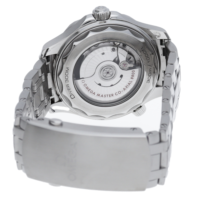 オメガの定番ダイバーズウォッチです。2018年に発表された最新型です。オメガ最新式の機械であるキャリバー8800を搭載しマスターコーアクシャル化されました。シースルーバックとなり、中の機械を見て楽しむ事ができます。