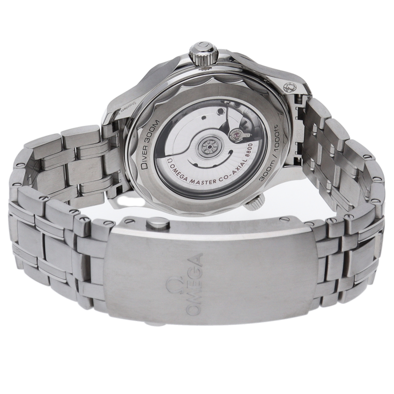 オメガの定番ダイバーズウォッチです。2018年に発表された最新型です。オメガ最新式の機械であるキャリバー8800を搭載しマスターコーアクシャル化されました。シースルーバックとなり、中の機械を見て楽しむ事ができます。