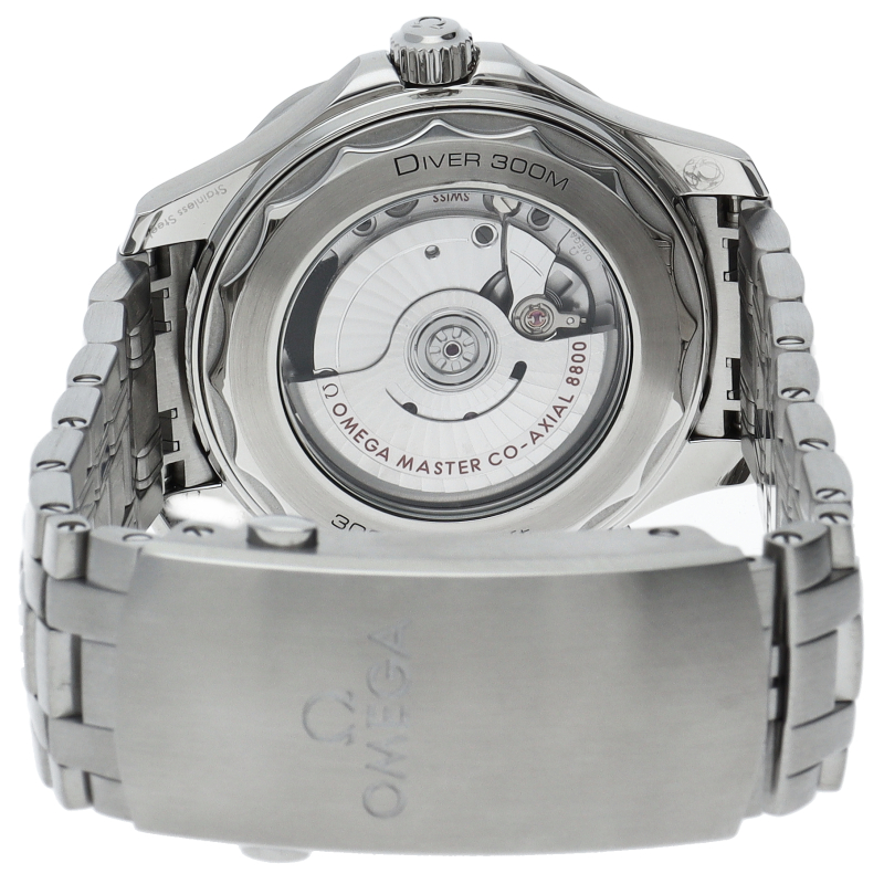 オメガの定番ダイバーズウォッチです。2018年に発表された最新型です。オメガ最新式の機械であるキャリバー8800を搭載しマスターコーアクシャル化されました。シースルーバックとなり、中の機械を見て楽しむ事ができます。