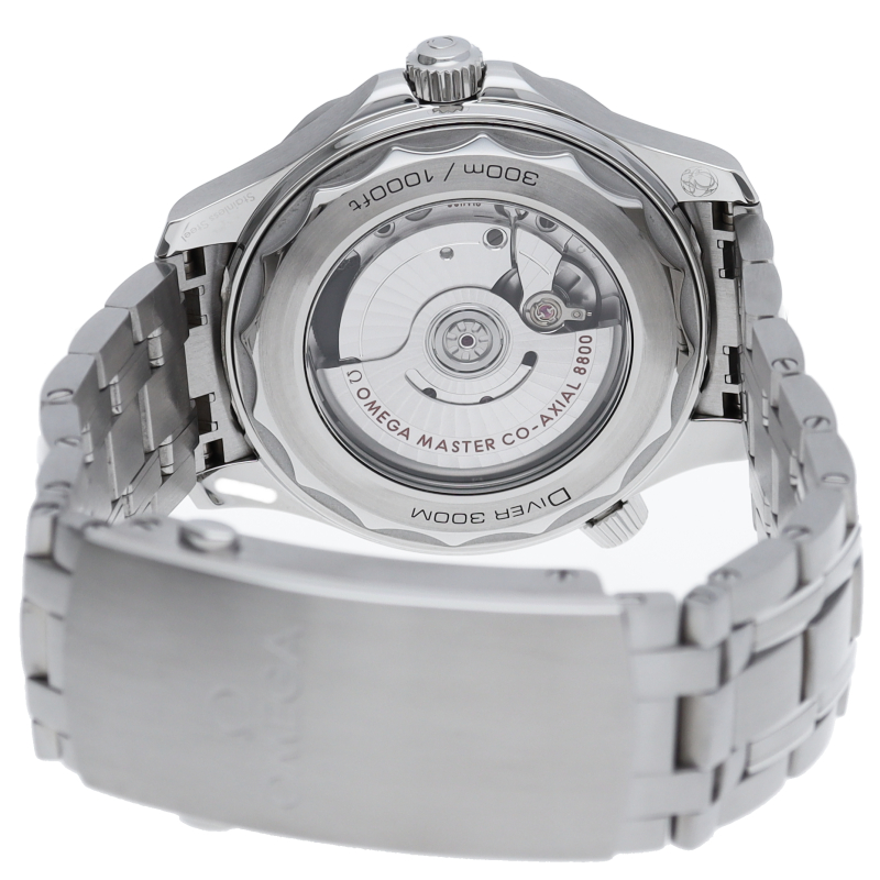 オメガの定番ダイバーズウォッチです。2018年に発表された最新型です。オメガ最新式の機械であるキャリバー8800を搭載しマスターコーアクシャル化されました。シースルーバックとなり、中の機械を見て楽しむ事ができます。