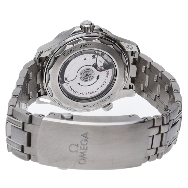 オメガの定番ダイバーズウォッチです。2018年に発表された最新型です。オメガ最新式の機械であるキャリバー8800を搭載しマスターコーアクシャル化されました。シースルーバックとなり、中の機械を見て楽しむ事ができます。
