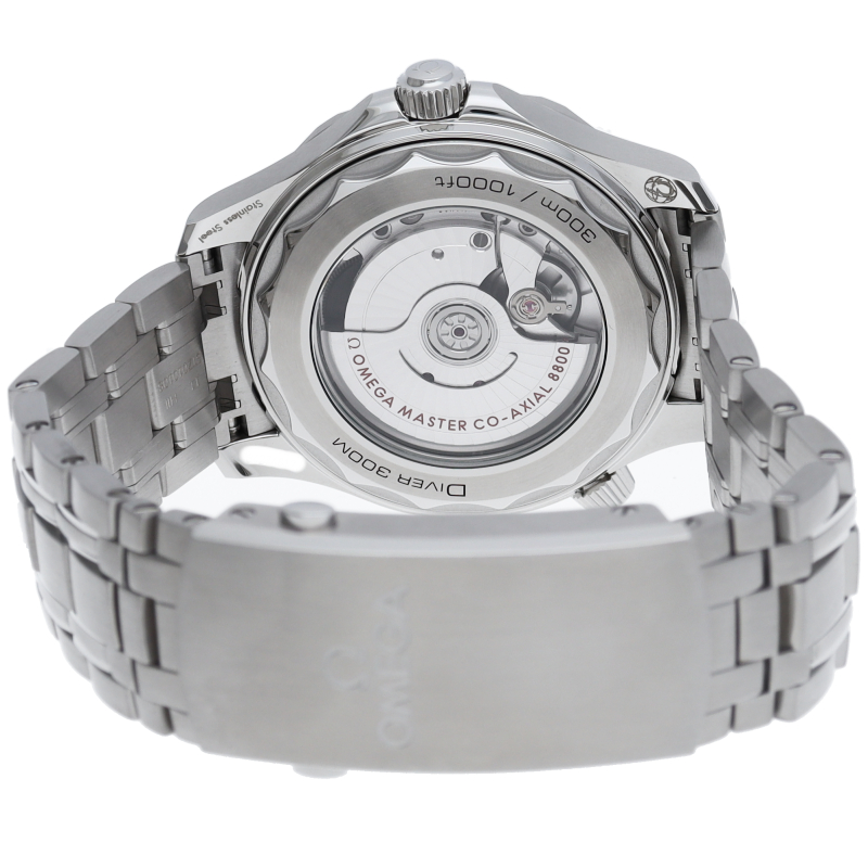 オメガの定番ダイバーズウォッチです。2018年に発表された最新型です。オメガ最新式の機械であるキャリバー8800を搭載しマスターコーアクシャル化されました。シースルーバックとなり、中の機械を見て楽しむ事ができます。